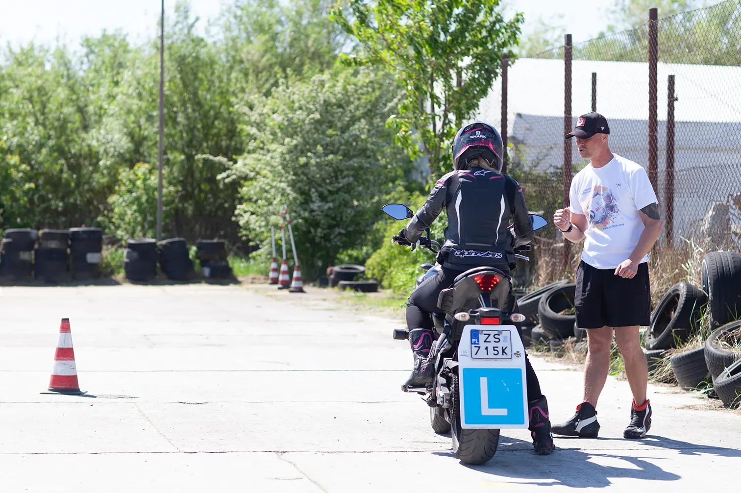 Pokazujemy nie tylko zadania egzaminacyjne, ale też uczymy rozumienia motocykla, pracy ciałem, kontroli maszyny i właściwych reakcji na drodze. Tempo dopasowujemy do kursanta, aby nauka była skuteczna i spokojna.
